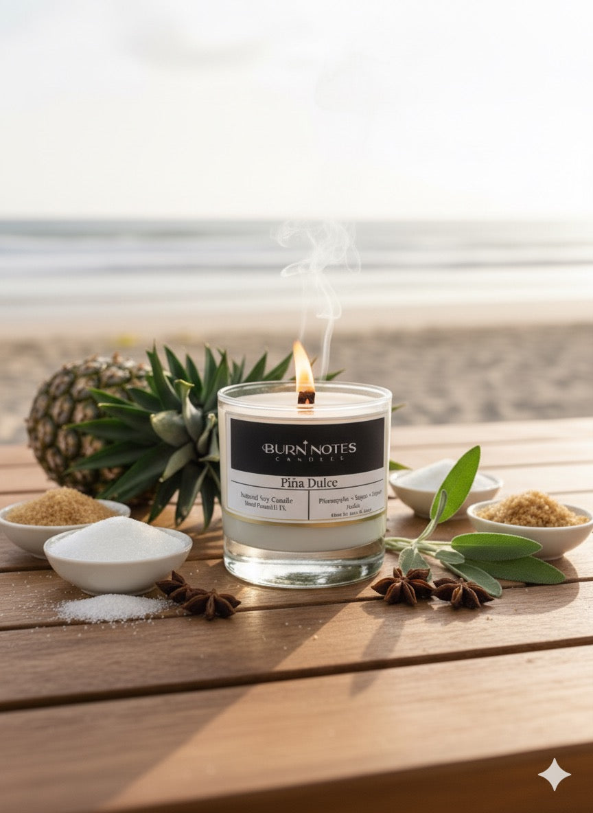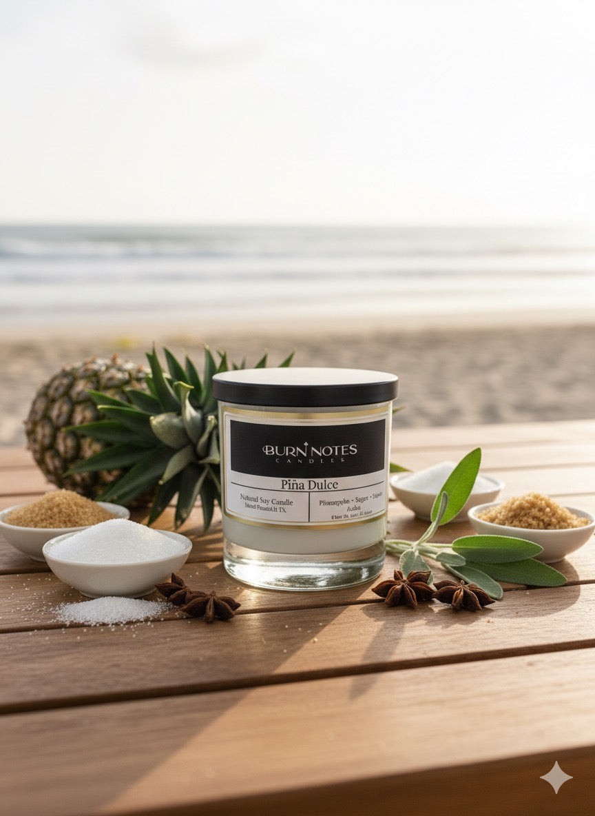 Juicy pineapple bursts forth with radiant sweetness, its sun-drenched vibrancy softened by delicate notes of crystallized sugar. Aromatic sage weaves through the heart, adding a touch of herbal refinement, while the subtle intrigue of anise lingers at the base—earthy, mysterious, and quietly sophisticated.